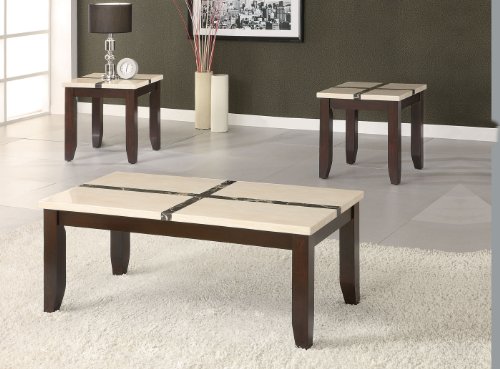 Acme 16558 3-Piece Justin Faux Marble Top Coffee/End Table Set, Black/White Review