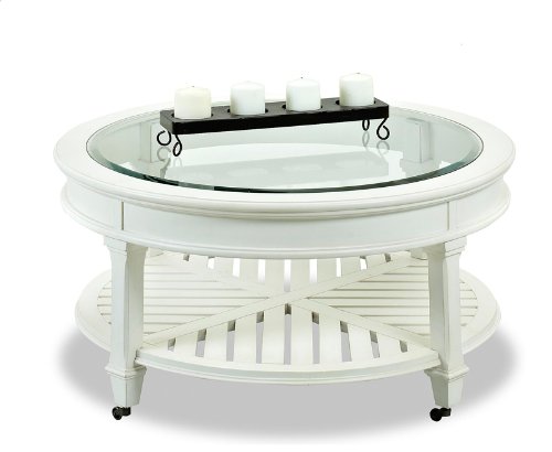 If your desire is to create a living room stylish and functional then to look no further than the Wilmington occasional tables. The round motion cocktail table complements the rectangular shape of the end table and both feature inset glass with a 3/4 inch bevel. The Wilmington occasional table set has style and function, featuring a open slat pattern on the shelves and a creamy warm white finish and 3/4 bevel inset glass. This cocktail table is also castered for easy movement.