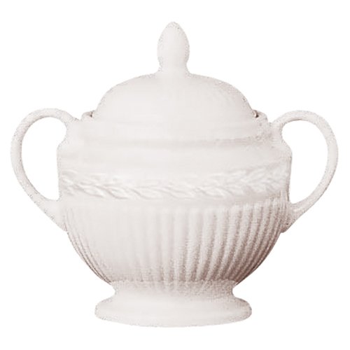 Edme is one of the world's most iconic patterns, dating back well over a century. The Edme Collection features a practical and stylish update to this time-honored traditional pattern; characterized by sophisticated Georgian shapes and generously sized dinnerware pieces. This Covered Sugar Bowl is decorated with a dramatic antique white glaze and elegant colonnade embossment, with beautiful laurel motif accent pieces; timeless and traditional, yet ideal for contemporary living.