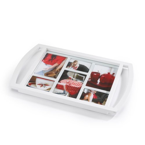Serve up your favorite memories with the Pictotray serving tray from Umbra. Available in black or white, this solid wood tray holds three 5 by 7-inch and three 3-1/2 by 5-inch photos - or floats three 4 by 6-inch photos - sealed between two panes of glass. Tray features large handles for easy carrying and measures 22 by 13 by 1-1/4-inch. Designed by Alan Wisniewski for Umbra - the worldwide leader in casual, contemporary and affordable design for the home.
